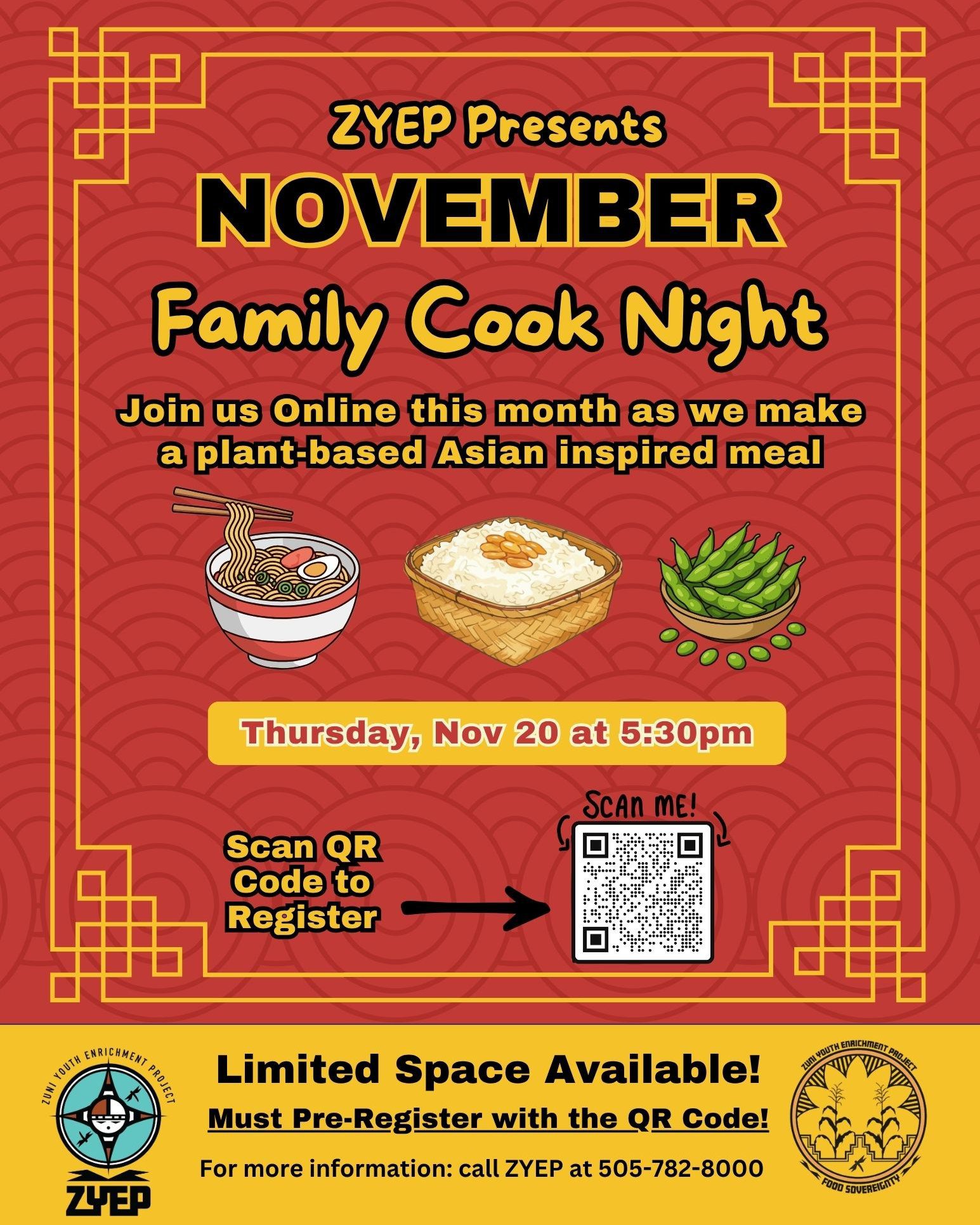 **Families residing in Zuni** Join us for family cook night on November 20, 2025 as we create a plant-based Asian inspired meal.