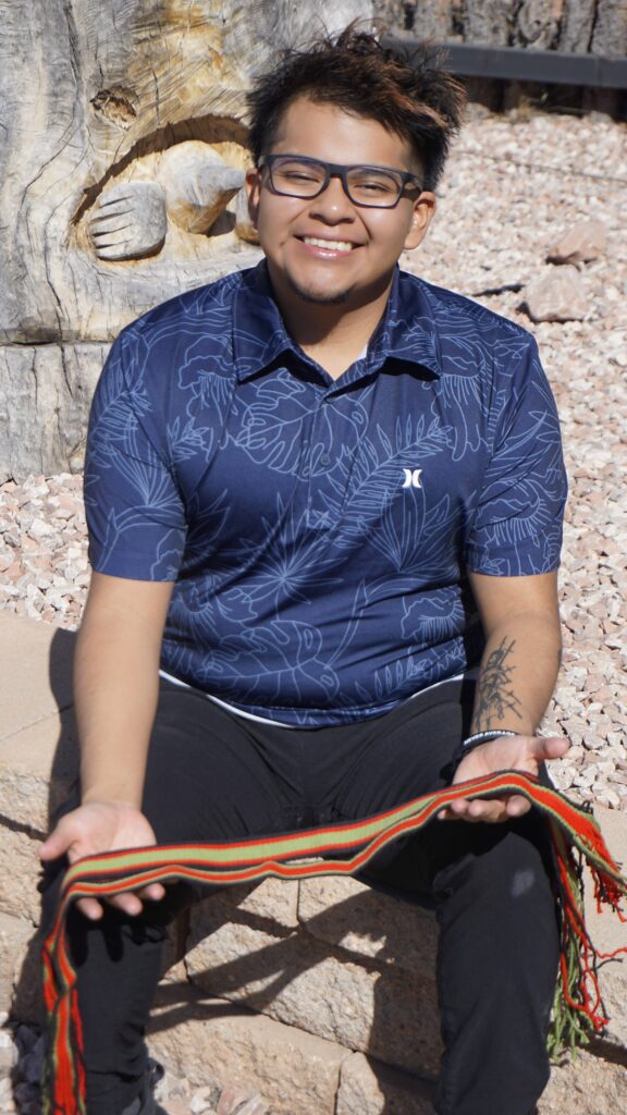 Now, through ZYEP’s Emerging Artist Apprenticeship, Kaleb is exploring yet another path. Although he was nervous on the first day, he says he couldn’t wait to learn more about traditional Pueblo weaving and its significance in Zuni culture.